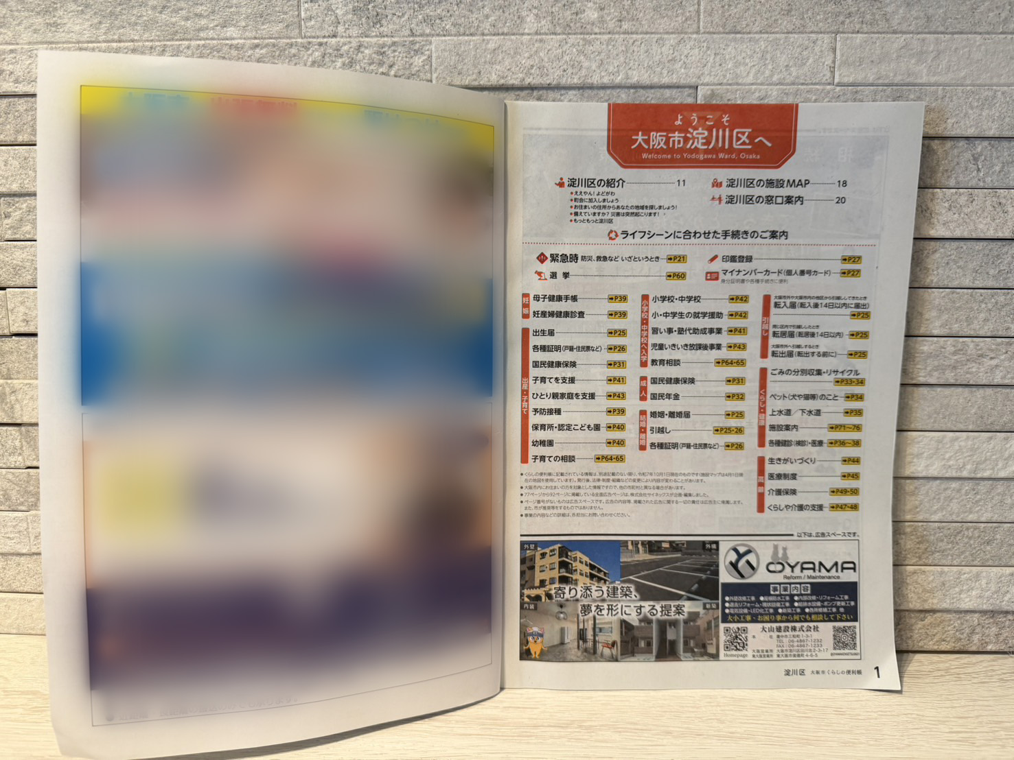 大阪市くらしの便利帳 淀川区 2026.01.16 大阪市発行のガイドブックに大山建設株式会社が掲載させて頂きました! 大阪市内転入者及び希望者合わせて350,000世帯へ配られますので、お住まいの方は是非ご覧ください! 大阪市淀川区に掲載して頂いております! 豊中市役所本庁舎デジタル広告